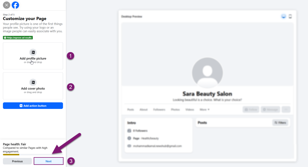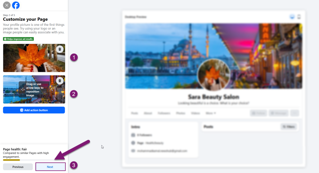 7. برای عکس پروفایل و عکس کاور پیج، تصویری آپلود کنید.(اختیاری)