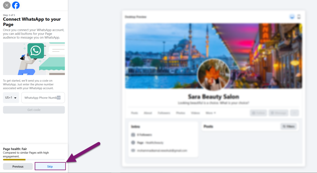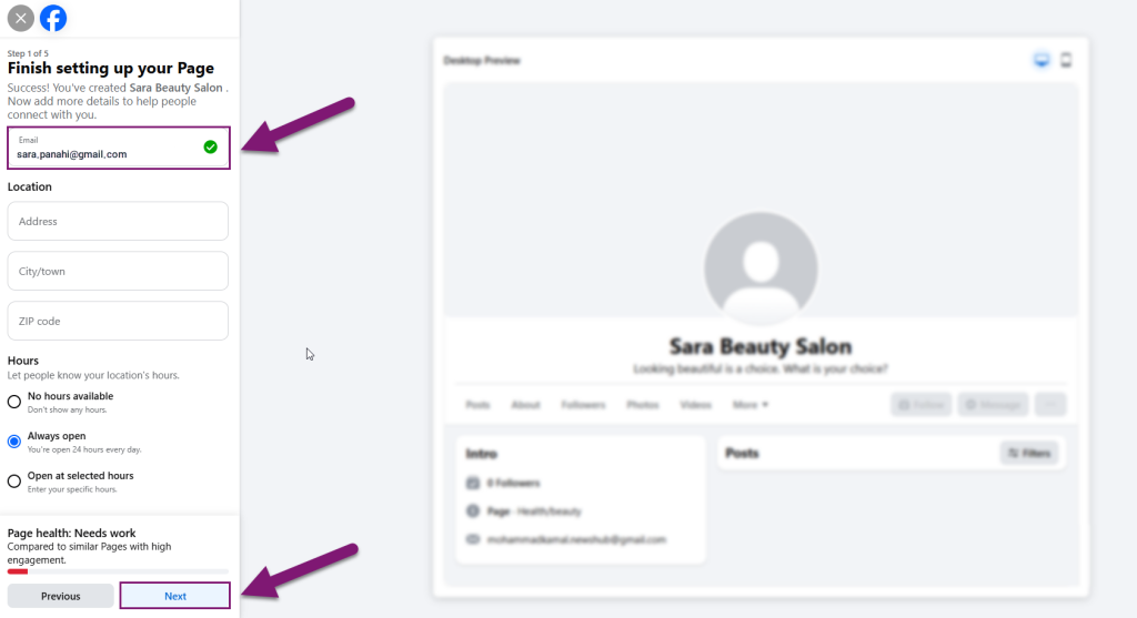 6. یک ایمیل برای پیج خود در نظر گرفته و دکمه Next را انتخاب کنید.