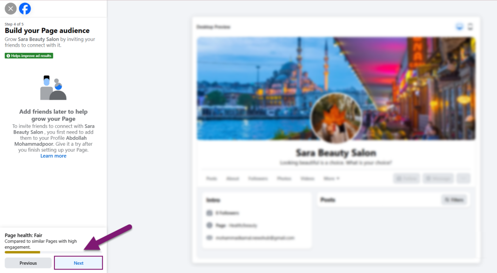9. در این قسمت میتوانید دوستان خود را به پیج دعوت کنید یا با دکمه Next از این بخش صرفنظر کنید.
