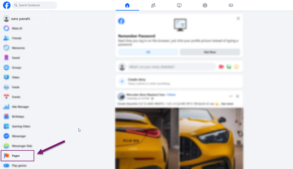 1. وارد صفحه فیسبوک خود شده و Pages را از منو سمت چپ را انتخاب کنید.