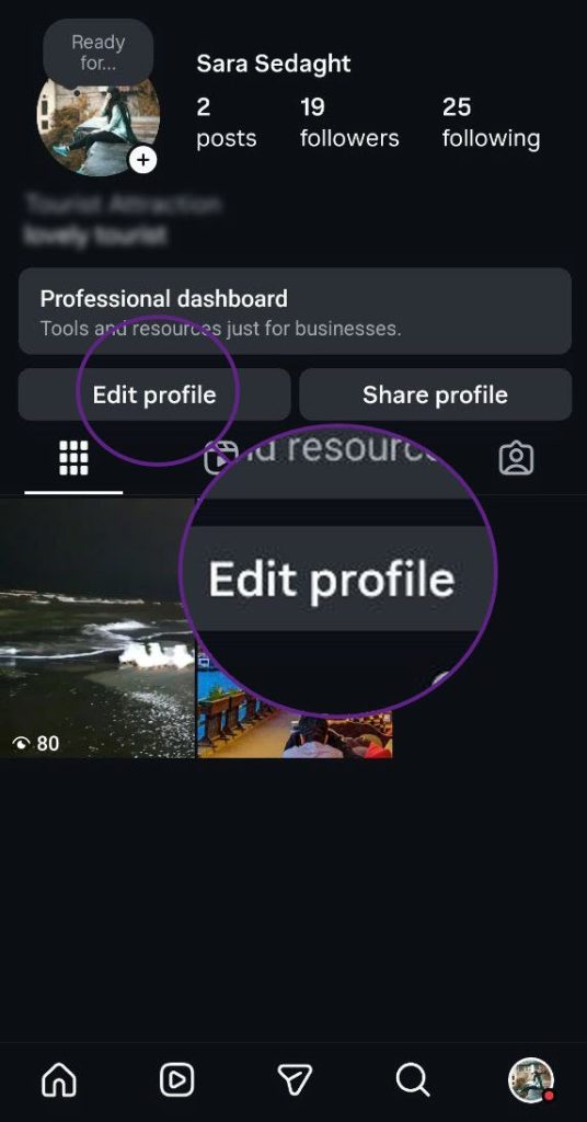 1. وارد اکانت اینستاگرام شوید و به پروفایل خود بروید.