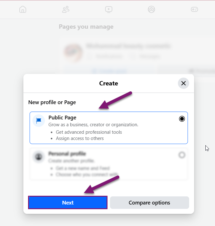 3. گزینه Public Page را انتخاب، سپس گزینه Next را انتخاب کنید.