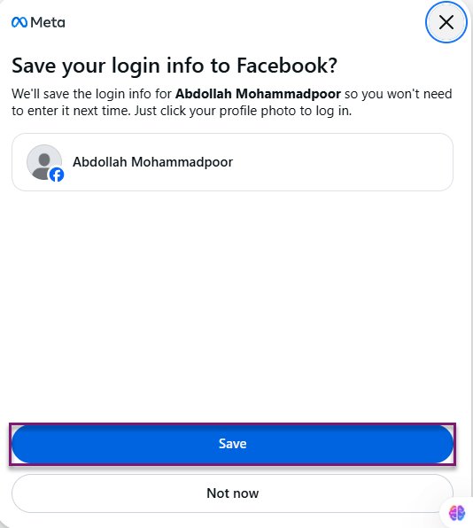 4. اطلاعات اکانت فیسبوک را “save” میکنید.